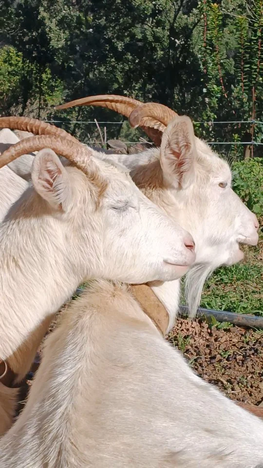 The goats ask us to be very clear about what we expect from them. What time are you coming to milk us? Who goes first and who goes last? Where exactly do I get my grain? When do we go to the meadow? Please come pick us up on time, otherwise, we will escape. If everything is clear, they are happy to cooperate with us. They are so curious and communicative. They always come to see what you are doing and bleat when you walk past. As if they say hello, I see you. The goats' manure becomes great compost for our garden. We are very grateful to the goats for this.